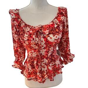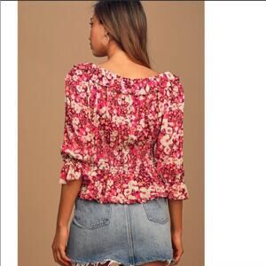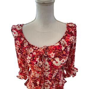 New Free People pink floral fruit punch combo peasant blouse, size S