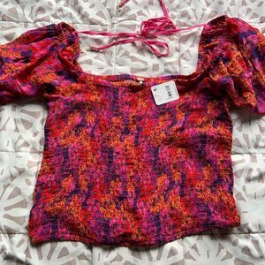 Brand New // Never Worn // New With Tags Included Sweet smocking shapes this cropped blouse covered in delightful blooms and framed by puff sleeves. - Size L (Standard USA Women's Sizing) Combo" (Visually it is a deep and vibrant pink with multicolor floral design patterns) Pease refer to pictures and ask questions.