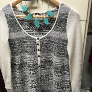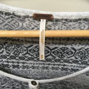 Free People Gray & White Flowy button down sweater with Nordic pattern.