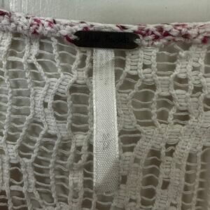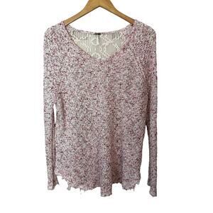 Free People Boho Sweater Womens M Pink White Crochet Lace Knit Back Raw Hem