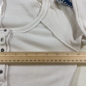 Free People Boho Thermal White Long Sleeve Top with Blue crochet Knit Cuffs