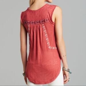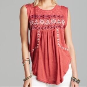 Free People Boho Top Linen Viscose embroidered Red Sleeveless Tunic