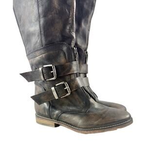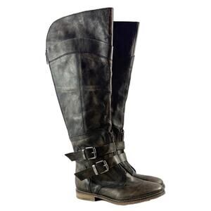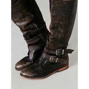 Free People Boho Trigger Tall Boots Distressed Leather Size 39