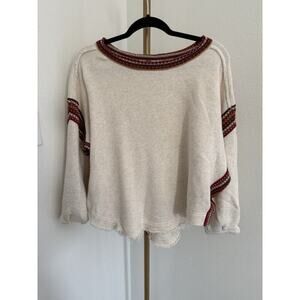 Free People Boho Trudy oversized ribbon decor trim pullover sweater top, size PS