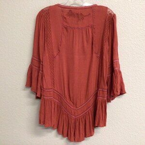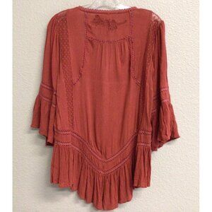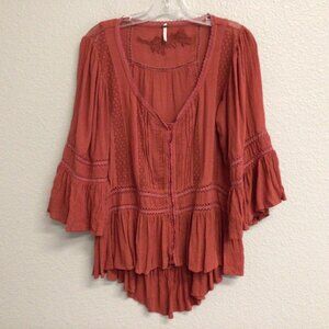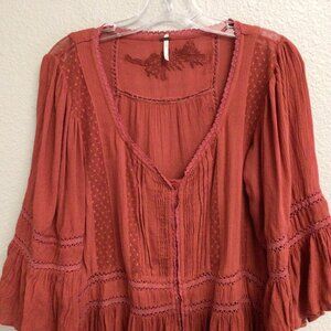 Free People Boho Tunic Top Blouse Size XS Pin Tuck Buttons Burnt Orange