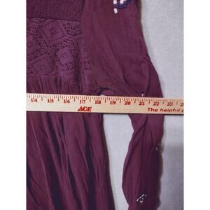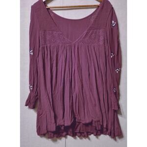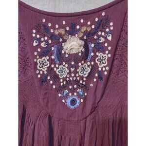Free People Boho Tunic Top M Burgundy Embroidered Long Sleeve Peasant Blouse