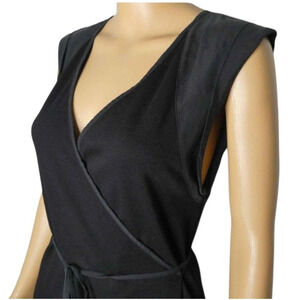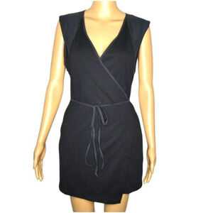 Free People Boho Wrap Dress Womens Medium Large Black Mini Tie Waist Knit Grunge