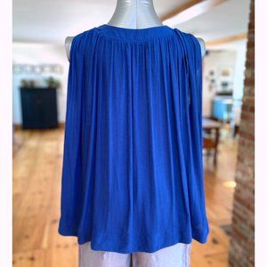 Free People Bold Blue Flowing Blouse with Beautiful Back Detailing