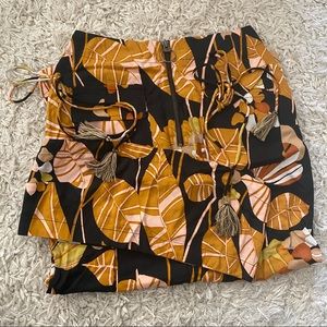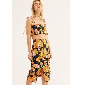 This skirt set is featured in a bold colorful print. Top: Bralette silhouette Cropped length Adjustable strap ties with tassel ends Coconut button closures in back Skirt: Midi length High-waist Exposed front zip closure Front patch pockets Front slit detail Care/Import Machine Wash Cold Made in Bali Measurements for size 6 Bust: 34 in Top Length: 7.5 in Skirt Waist: 28.5 in Skirt Length: 32 in Contents 100% Rayon