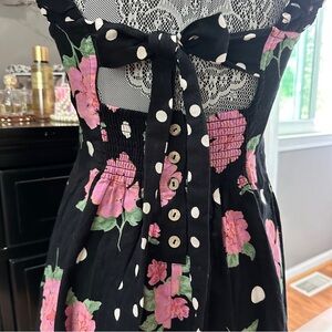 Free People Bom Bom Mini Dress | Black Floral Polka Dot Cutout Back | Size Small