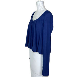 Free People Bondi Long Sleeve cropped Blouson Thermal Top True Blue Women XL NWT