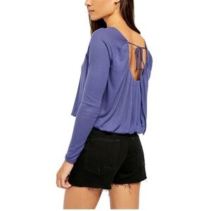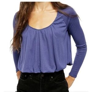-A blouson top features a scoop neck, tie back, and elasticized hem in a comfy thermal knit for effortless style.