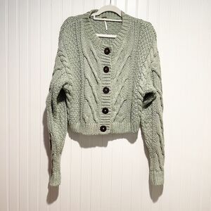 Free People Bonfire Cardi Mint Green Cableknit Size Small