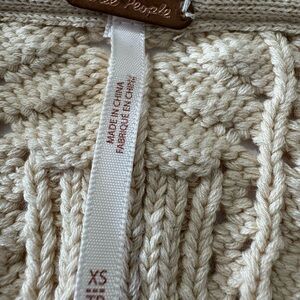 Elevate your style with this chic cream V-neck cropped sweater by Free People, designed for comfort and elegance. Cute two button cardigan, chunky heavy cotton knit.