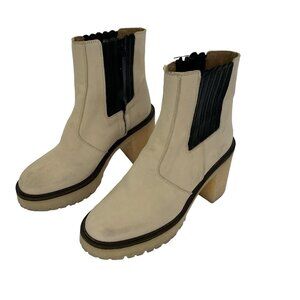 Free People Boots 36.5 Tan Ankle Leather Block Heel Boho Festival