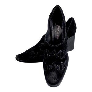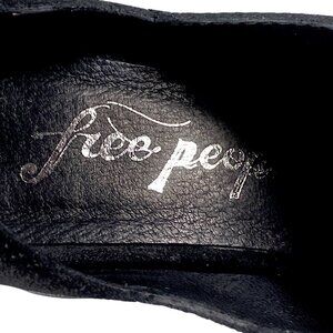 Free People Size 7 Women’s Black Suede Alamo Western Ankle Boot with Low Cut Silhouette, Studded Booties, Pointy Toe, Chunky Stacked Block Heel, Slip On, Cowgirl Americana Prairie Cottagecore