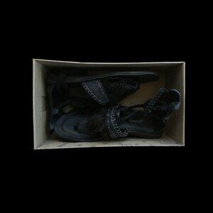Free People Bora Bora Black Leather Gladiator Sandals Feather Tie-Up, Size 8 New
