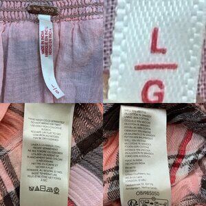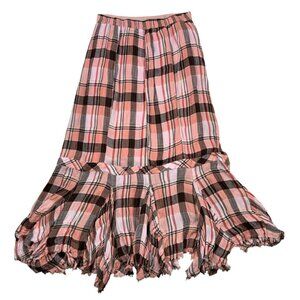 Free People Bordeaux Plaid Maxi Skirt L Soft Combo Pink Frayed Hem Western Boho
