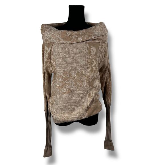 Free People Botanical Wool-Blend Sweater Off Shoulder Rose Gold Womens Sz XS