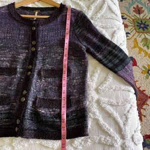 Free People Boucle Purple Women's Jacket Knit Sweater Cardigan Size Small