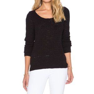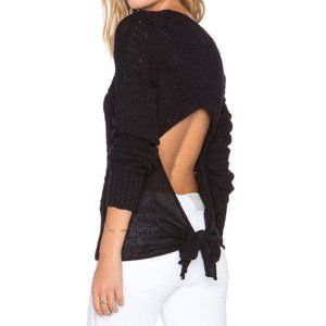 Free People "Bow Back Pullover" sweater in Black, size S. Sold out everywhere! Gently used. Open cut-out back with adjustable tie. Super flattering on! Revolve description: "Body: 100% cotton.Trim: 58% cotton, 42% nylon. Ribbed trim. Back cut-out with tie closure. Contrast knit panels. Modeled in size S. Model Measurements: Height 5'7"."