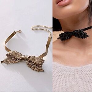 Free People Bow Choker, NEW Designed to add a timeless touch to any look, this so cool choker features a defined beaded bow at front on an adjustable chain with a classic clasp closure. Choker style, beaded bow, adjustable chain, clasp closure. Bold and beautiful, this fun accessory adds the perfect femme finishing touch.