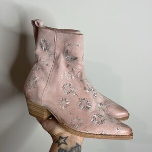 Free People | Bowers Pink Suede Star Embroidered Western Booties Size 7.5 NWOB