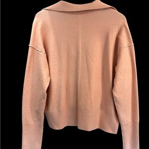 Free People Boxy Reverse Seam V-Neck Collared Sweater Dusty Pink Hi-Low Hem Sz M