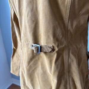 Features: Soft faux suede, V-neckline, adjustable lace-up detailing, long-sleeve style, oversized patch-pocket detailing, defined seams, lined