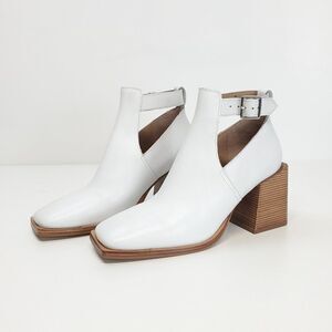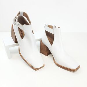 Free People Brady Buckle Bootie in White Stacked Heel Size 39