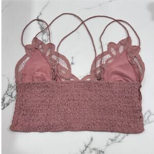Add a touch of comfort and style to your wardrobe with this Free People bralette! In a beautiful dusty rose color, this bralette is perfect for layering or wearing on its own. It's in excellent condition and ready for a new home.
