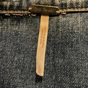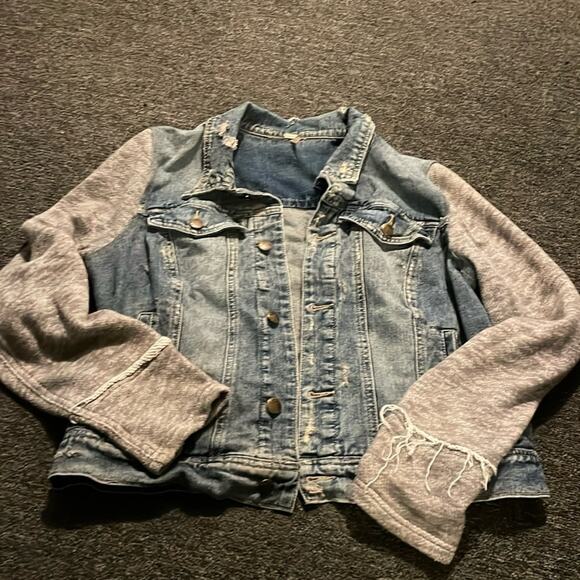 Free People Brand Denim Gray Sweater Distressed Sleeves Jacket Size Large