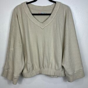 Free People Brb V-neck Relaxed Fit Solid Textured Pullover Size S