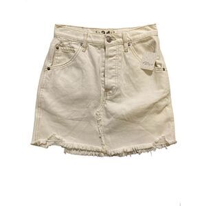 Free People We The Free Brea cream color distressed denim cutoff skirt.