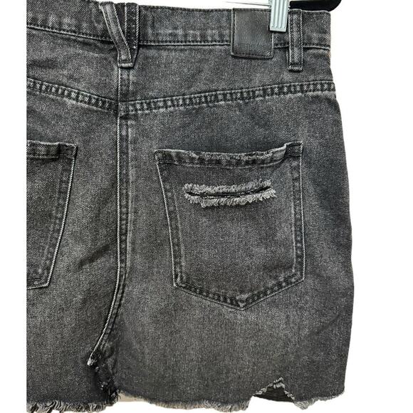 Free People Brea Denim Skirt Mini High Cutoff Distressed Faded Black Size 31