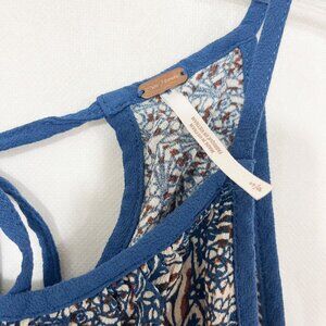 Free People Break Free Blue & Brown Printed Tank Top Boho Indie - Size Small