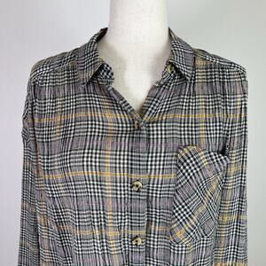 Free People Break My Stripe Plaid Shirt Womens Small Soft Lightweight Basic Grey