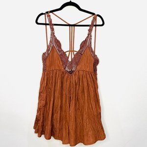 Free People Breathless Mini Slip Dress Boho Copper Rust Color Size XS