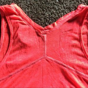 Loose fitting tank slightly longer in the front. Great bright orange color for summer!