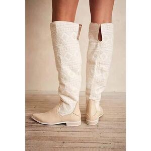 Free People Bren Slouch Boots Womens Embroidered White Knee High 38 US 8