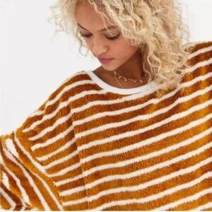 Free People Breton Autumn Pearl Striped Sherpa Pullover Sweatshirt
