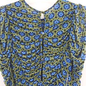 Free People Briella Printed Ruched Bodycon Midi Dress Womens Size XS Boho Retro Floral Date Night Mesh