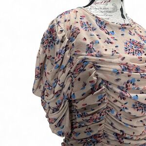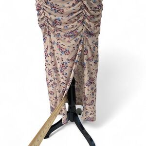 Free People Briella Ruched Midi Dress Tea Combo Floral Slit Puff Sleeve