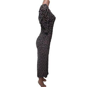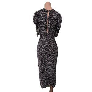 Free People Briella Short Sleeve Ruched Midi Dress Women's Sz S Black Combo NWT