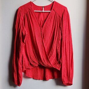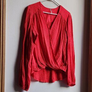 Free People Bright Red/Orange V-Neck Crossover Blouse Size Medium
