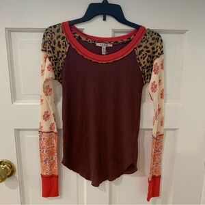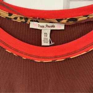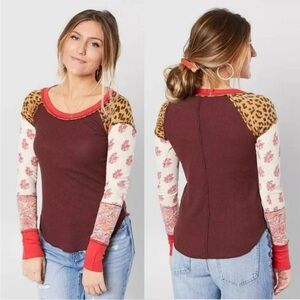 Free People Bright Side Waffle Knit Mixed Print Thermal Top Size XS Leopard Y2K