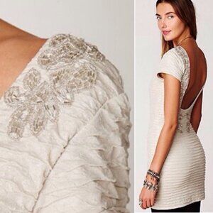 Free People Bringing Sexy Back Shimmering Champagne Beaded Mini Dress