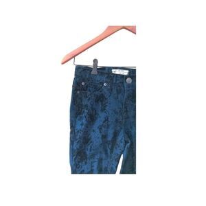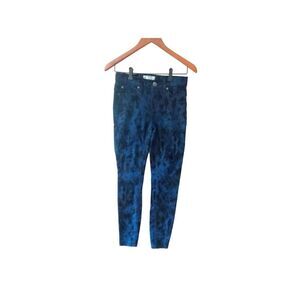 Free People Brocade Flocked Skinny Indigo Blue Floral Jeans Size 24