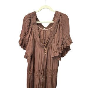 Free People Broen Dream On Maxi Dress Oversized Bohemian Embroidered Lace Medium