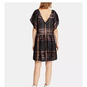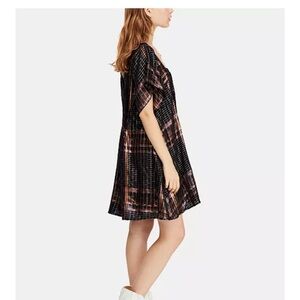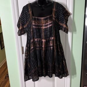Free People Bronze Metallic Plaid Oversized Mini Dress Badydoll Dress Size XS
